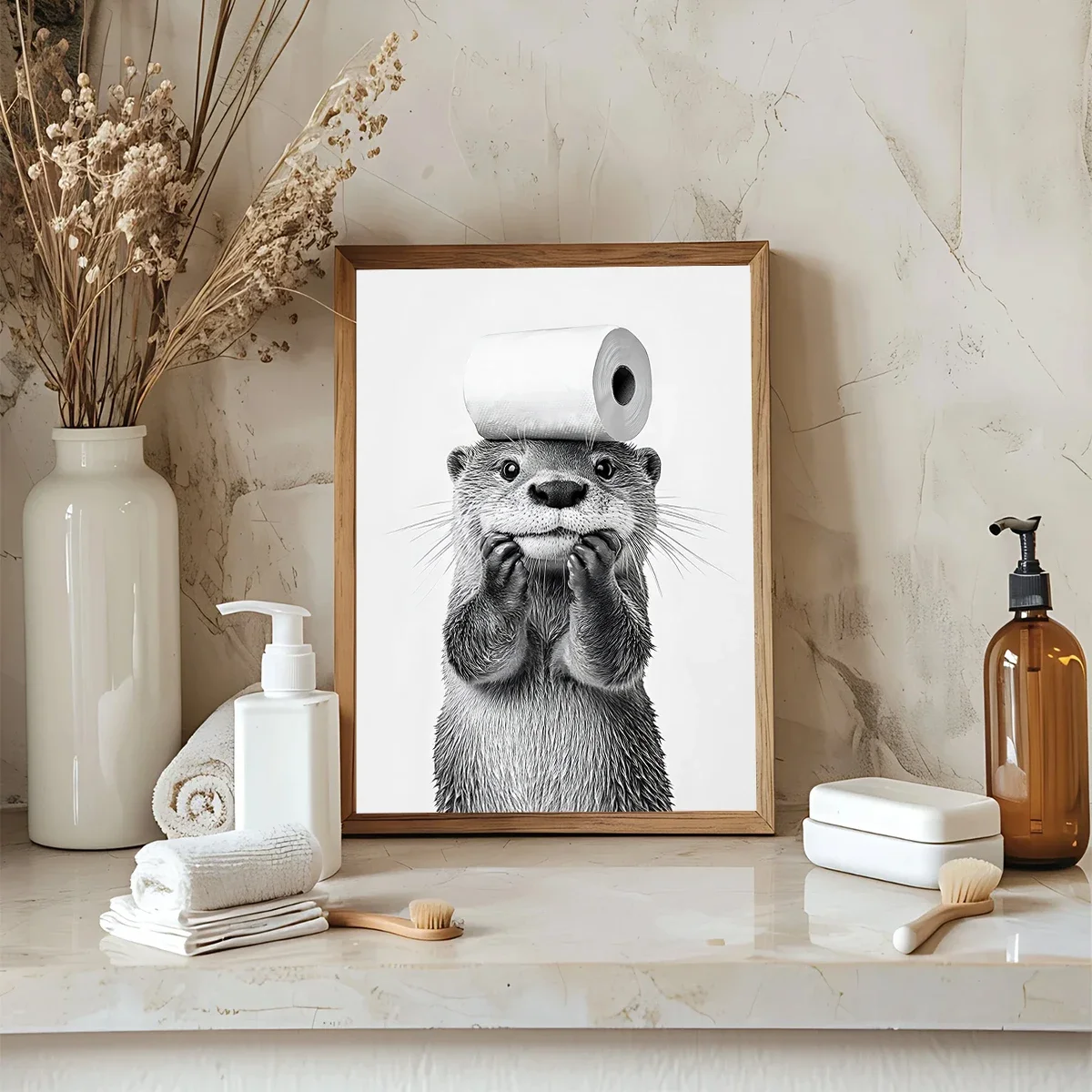 Funny Otter & Raccoon Bathroom Canvas Poster